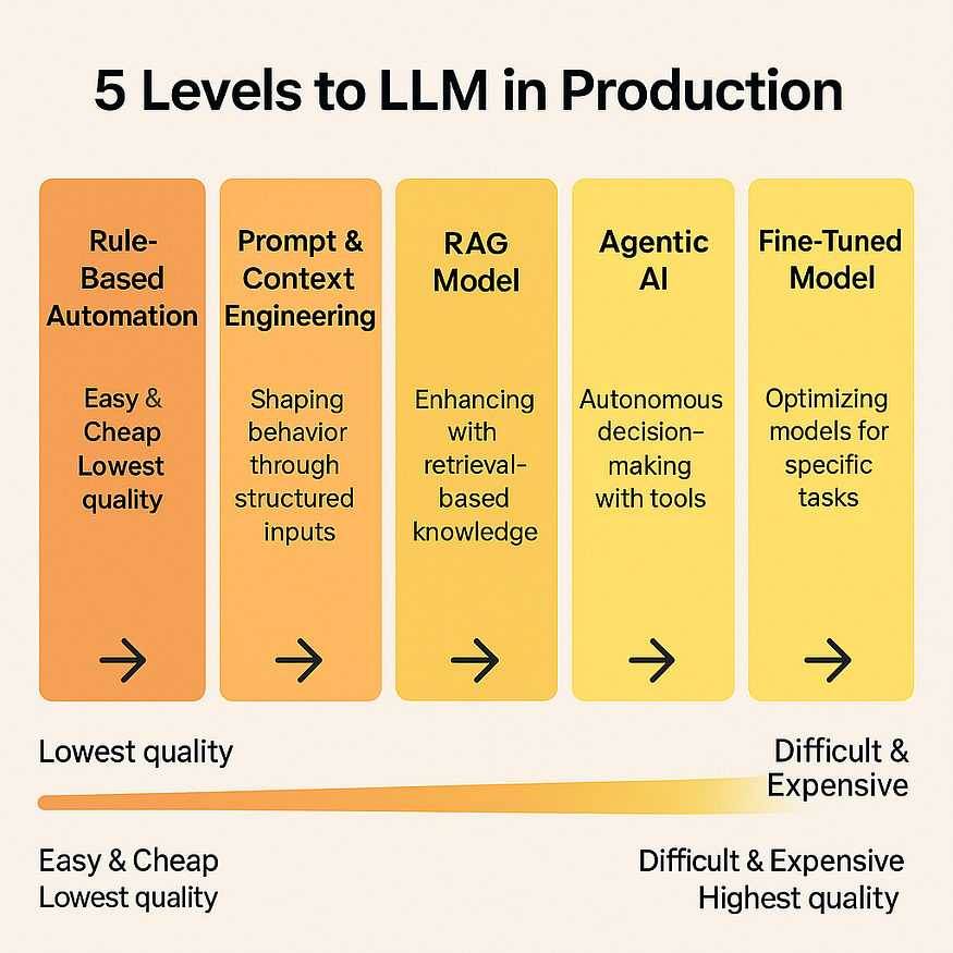 The journey from prompts to production-grade AI is not linear — it’s a strategic choice based on your resources, requirements, and risk tolerance. Start simple, measure rigorously, and scale complexity only when simpler approaches demonstrably fail.